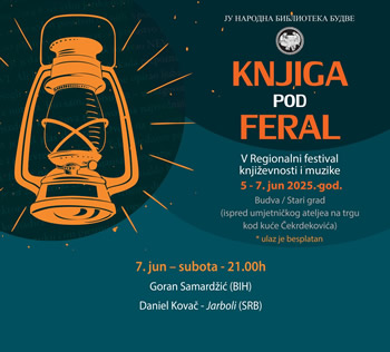 Treće večeri  petog po redu festivala regionalnih pisaca “Knjiga pod feral“  u subotu, 7. juna sa početkom u 21 čas na Pjaceti kod kuće Čekrdekovića ispred Otvorenog umjetničkog ateljea u Starom gradu, budvanskoj publici predstaviće se sarajevski pisac Goran Samardžić i pisac i gitarista grupe Jarboli Daniel Kovač, čijim će muzičkim nastupom biti završen ovogodišnji Festival.
