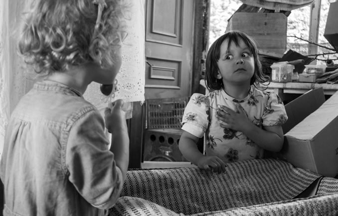Gđe god da gledaju likovi izložbe – u objektiv, jedno u drugo, u zasjenjen prostor ili van kadra- njihovi pogledi postaju iskaz u zajedničkom razgovoru bez riječi.