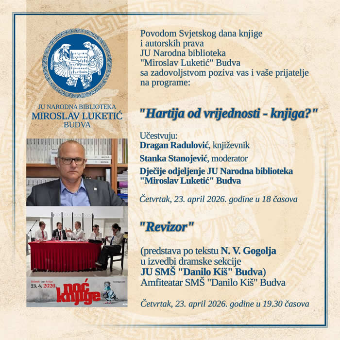 Narodna biblioteka Budve – Svjetski dan knjige i autorskih prava