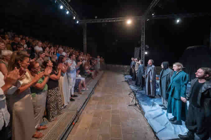 Predstava je izvedena u ambijentalnom prostoru, što je donijelo određene tehničke izazove. Reditelj Popovski je naveo da je scena između crkava „najmanja do sada“ na kojoj su izvodili ovu predstavu.