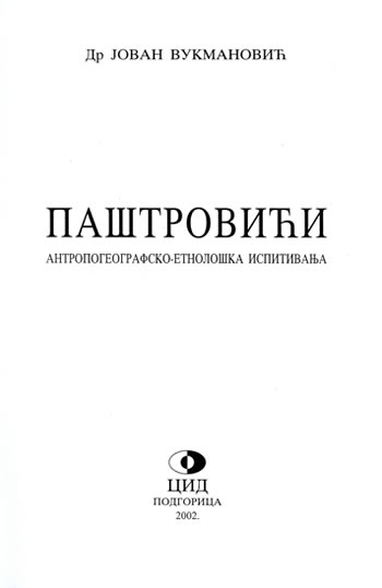 Zahvaljujemo se izdavačkoj kući CID iz Podgorice koja nam je poklonila knjigu dr Jovana Vukmanovića "Paštrovići" i na taj način omogućila da našim posjetiocima prenesemo jedan njen dio. Knjiga predstavlja obimna antropogeografsko-etnološka ispitivanja Paštrovića.