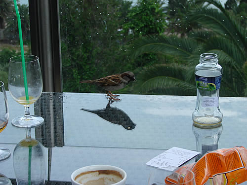 Tokom cijelog druženja na terasi hotela, pravio nam je društvo za stolom, bolje reći na stolu, još jedan prijatelj koji se ovdje očigledno odomaćio.