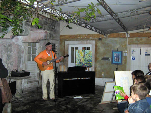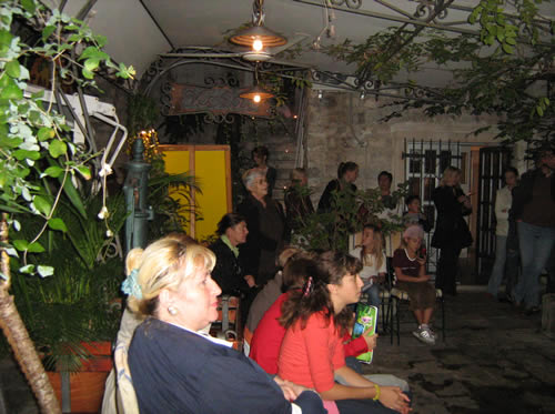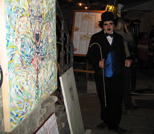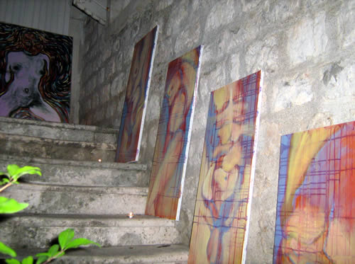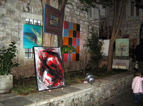 Naviknuti na posmatranje umjetničkih slika na zidu u zatvorenim prostorima galerija, osjećali smo se neobično i prijatno posmatrajući iste na drvetu, stepeništu, na otvorenom prostoru, na trgu, na fasadi stare kuće.