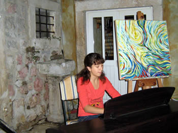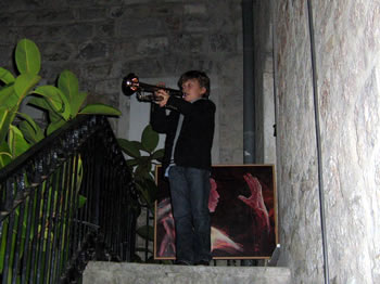 Doživljaj razgledanja slika upotpunjuju zvuci trube i klavira, koje vam šalju učenici Škole za osnovno muzičko obrazovanje iz Budve.