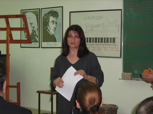 Nakon pozdravne riječi, prisutnima je govorila o onome što prethodi svakom takmičenju. To je vrijedan i naporan rad učenika i njihovih nastavnika na pripremi za takmičenje. Nakon napornog vježbanja slijedi niz pripremnih koncerata koji se održavaju neposredno ispred samog takmičenja. Ovako ozbiljne pripreme dale su i veoma vrijedne rezultate učenika.