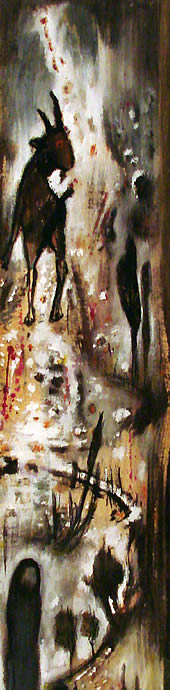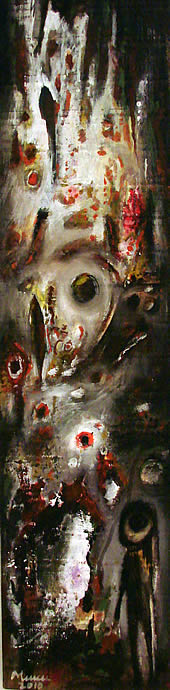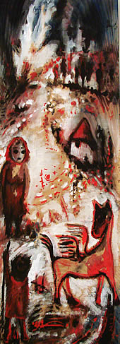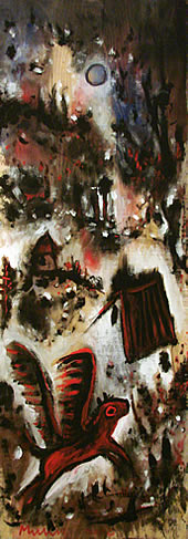Svakako da je to dječačko crtanje plod velikog umijeća, onog što priprada razgradnji što dolazi poslije izvanredno dobro savladanog studijskog načina slikanja, realizacije bliske, u stvari, mnogo više duhu slike Šagala, nego Munka. U daljoj analizi spoljašnjeg sadržaja, može se doći i do nemirenja umjetnika sa dostignutim i to ne samo u izboru materijala na kome slika, nego i načina na koji to radi; jer je kontinuitet sadržaja ostvaren od početka i on se ne mijenja, ali se stalno i na mahove traže oblici druge i drugačije egzekucije. I uvijek jeto ekspresivan naboj, manji ili veći, bliži apstrakciji ili poetskom obliku savladavanja realnosti... Potez je slobodan i kratak, sa, naizgled, komotno nabacanim bojenim površinama; ispod čega, ispod čega izbija analiza slučajnost, u ovom slučaju: linijsko ili bojeno praćenje godova i čvorova što asocijacijom izazivaju iste prizore... Prema tome, u osnovi je racionalan osjećaj koji prekrivaju potezi i boje što u kolopletu stvaraju sliku vjetra što donosi uvijek isto sjećanje... |