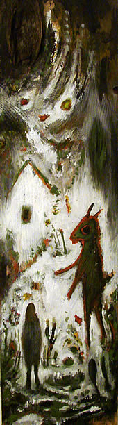 Onda se ponavljajući prizor komponuje na neobičnom formatu, najtežem za slikarsku realizaciju. Riječ je o veoma izduženoj dasci, običnoj, koja često služi za šalovanje. Umjenik je ponekad nađe sam ili mu je donesu komšije i prijatelji.