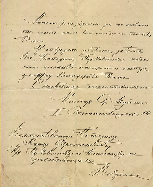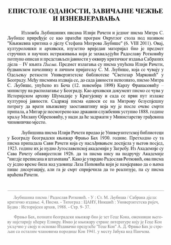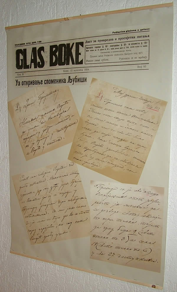 Prenosimo tekst iz kataloga koji je pratio ovu izložbu na osnovu kojeg se može najbolje vidjeti o kojim Ljubišinim pismima se radi i kakav je bio njihov put do adresa na kojima se danas čuvaju. Prikazujemo i neka od izloženih pisama, a posebno zanimljivo i vrijedno pažnje bilo je pismo koje je na ovoj izložbi po prvi put prikazano naučnoj i kulturnoj javnosti. Riječ je o pismu Mitra Stefanova Ljubiše (sina Stefana Mitrova Ljubiše) koje je on 1898. godine uputio Karlu Franasoviću s namjerom da pokuša povratiti očeve rukopise (poslate kralju Milanu Obrenoviću 1888. godine).