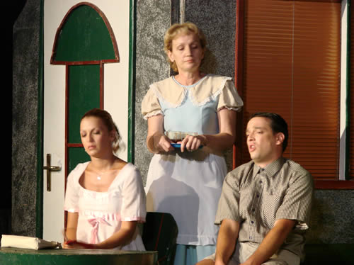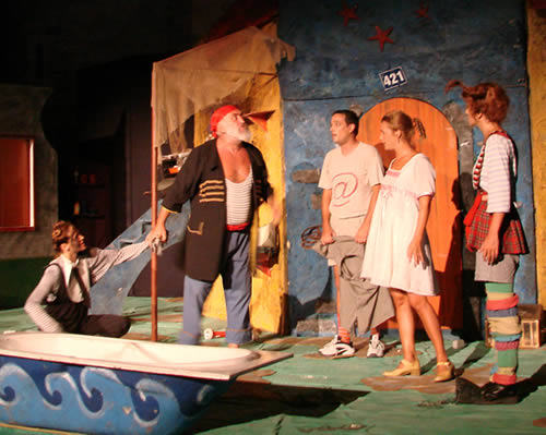 Dramatizaciju teksta su uradili Andrej Rozman i Nikola Vukčević, scenograf je Smiljka Šeparović, kostimograf je Marija Dimitrijević, muziku je uradio Vladimir Marić, song grupa «Daleka obala» i scenski pokret Slavka Nelević. U predstvai igraju: Jelena Nenezić, Ivana Čović, Branko Ilić, Bojana Knežević, Pavle Ilić, Marta Pićurić, Željko Radunović, Staša Tomas, Vesna Vujošević, Dejan Đonović.