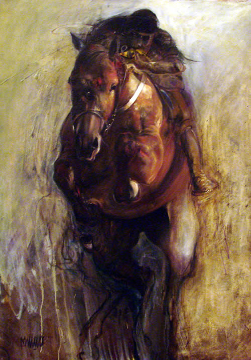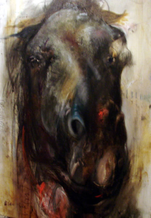 Međutim, u Vemićevom slikarstvu konj nije nosilac estetske kategorije lijepog već reprezent jednog dubljeg psihofizičkog značenja nastalog preobražavanjem i apstrahovanjem stvarnosti radi postizanja jedinstvene figurativne predstave prilagođene organskim modusima sugestivnog ekspresionizma. Kao razoren klasični model, igrom tijela životinja pozira pred nama i nesvjesno nas asocira na slike bića po sebi koje ima svoje strahove, nagone ze unuštenjem i samouništenjem, osjećaj duboke melanholije i beznađa koje možemo povezati sa egzistencijalnim ustrojstvom savremenog čovječanstva. Čak i u stanju potpunog mira on emanira dramske refleksije koje nalazimo u očima ispunjenim tugom i rezignacijom, u napetim nozdrvama i likovno-jezičkim elementima koji potenciraju stvarne i metaforičke osobenosti konja. Glava postaje kosmos u malom. U/na njoj se vrše drastične metamorfoze kojima se razara koža i prodire u irealne prostore nutrine, otvaraju klakerule, rasprskavaju amorfne mase, pomjeraju djelovi glave, povezuju nedefinisane forme.