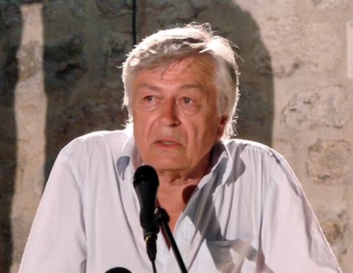Na pitanje gospođe Branke Bogavac - šta ga je to najviše privuklo da piše monografiju o Dadu Đuriću jednostavno odgovara - "On je genije". Za sve druge umjetnike kaže da je to zbir talenta i ogromnog rada, a za Dada da je to nešto sasvim drugo. "Što god on dotakne, pretvara ga u čisto zlato umjetnosti. Osim tehničkih problema mjerim svaku riječ koju napišem o Dadu i to je jedna velika odgovornost i rizik pisati o tako posebnom umjetniku. Dado i dan danas govori cetinjskim naglaskom ali ja Dada smatram umjetnikom, duhovnikom cijelog svijeta". Kliknite na natpis da bi vidjeli video zapis sa Trga pjesnika