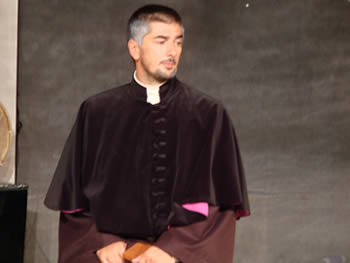 Taj moderni đavo, osvajač slobode jeste sušta suprotnost Don Krstu. Bruno je Krstovo drugo lice ili dvojnik, ili sve ono što je on želio da bude, ali nije. Bruno je po energiji sličan impresariju Cijaniju. Ta vidra i aždaja koja uzme i poždere pisca libreta i glumce i pjevače, i kostimografe i scenografe i sve to dovede u pogon u stanje harmonije. Impresario živi za uspjeh, za aplauz. Ali je to impresario koji zna šta je poezija, šta je muzika, ali zna i kakva je moć publike. Libreta Don Krsta izvođena su u Veneciji, Modeni, Pjaćenci, u Beču. I Don Krsto je mislio da će slobodu naći u svijetu pozorišta. A onda je vidio da i u tom svijetu vladaju buka i bijes, taština, improvizacija i površnost. Pozorište je carstvo, prćija impresarija, a nije dom, nije hram pjesnika. Don Krsto, mladi plemić iz Budve, učitelj i kanonik u crkvi Sv. Ivana, pisac Anala grada Budve, doktor prava iz Padove, pisac libreta i kanonik crkve Sv. Marka u Veneciji bio je nadasve pjesnik. Kakav je samo onaj sonet kojim Tripo začikava Krsta. Kakav naslov Lijepoj ženi koja je iz nestašluka izlazila iz kuće u vrijeme kada je sniježilo. Koliko melanholije u tom naslovu i koliko melanholije u tom sonetu. To je jedan od najljepših soneta italijanskog baroka, kao najbolji Petrarka. Samo sa više šarma i mangupluka. Energija ove drame počiva u jeziku. Taj jezik ima ljepotu mediteranske arije, ima ritam valova. Vida Ognjenović uspijeva da ljepotu baroknog, mediteranskog jezika (intonaciju iz anala, soneta iz drame Krsta Ivanovića) prevede u govor, u atmosferu drame „Don Krsto“.