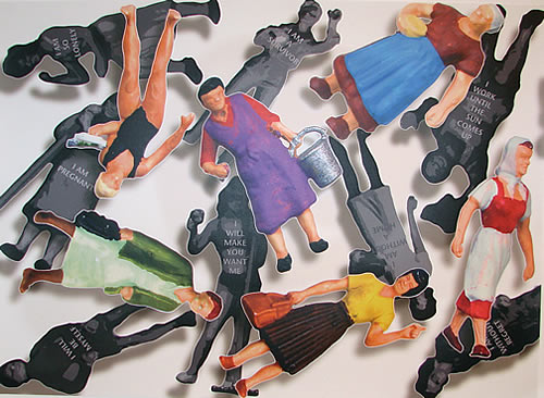 naboj postignut je dinamikom međuprostora oba sloja figura i njihovim reflektujućim senkama. Svojom kolektivnom snagom figure žena preuzimaju celokupnu izložbenu površinu, njhova kombinovana energija postaje moćno prisustvo označavajući žensko MI.